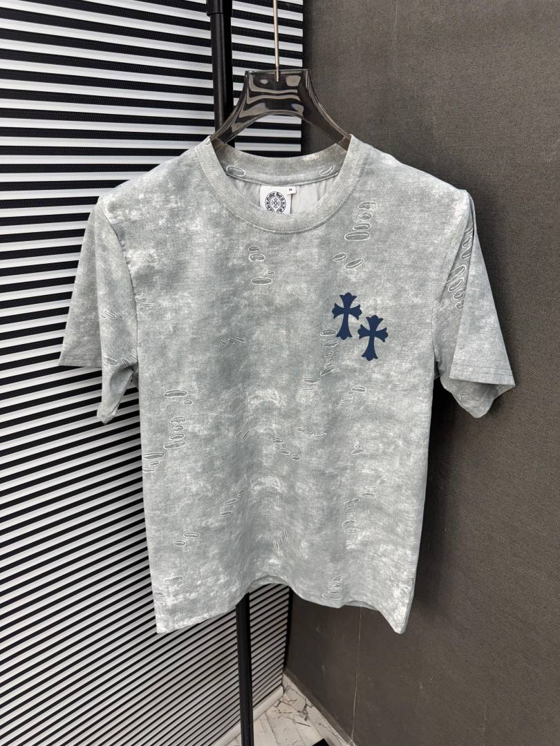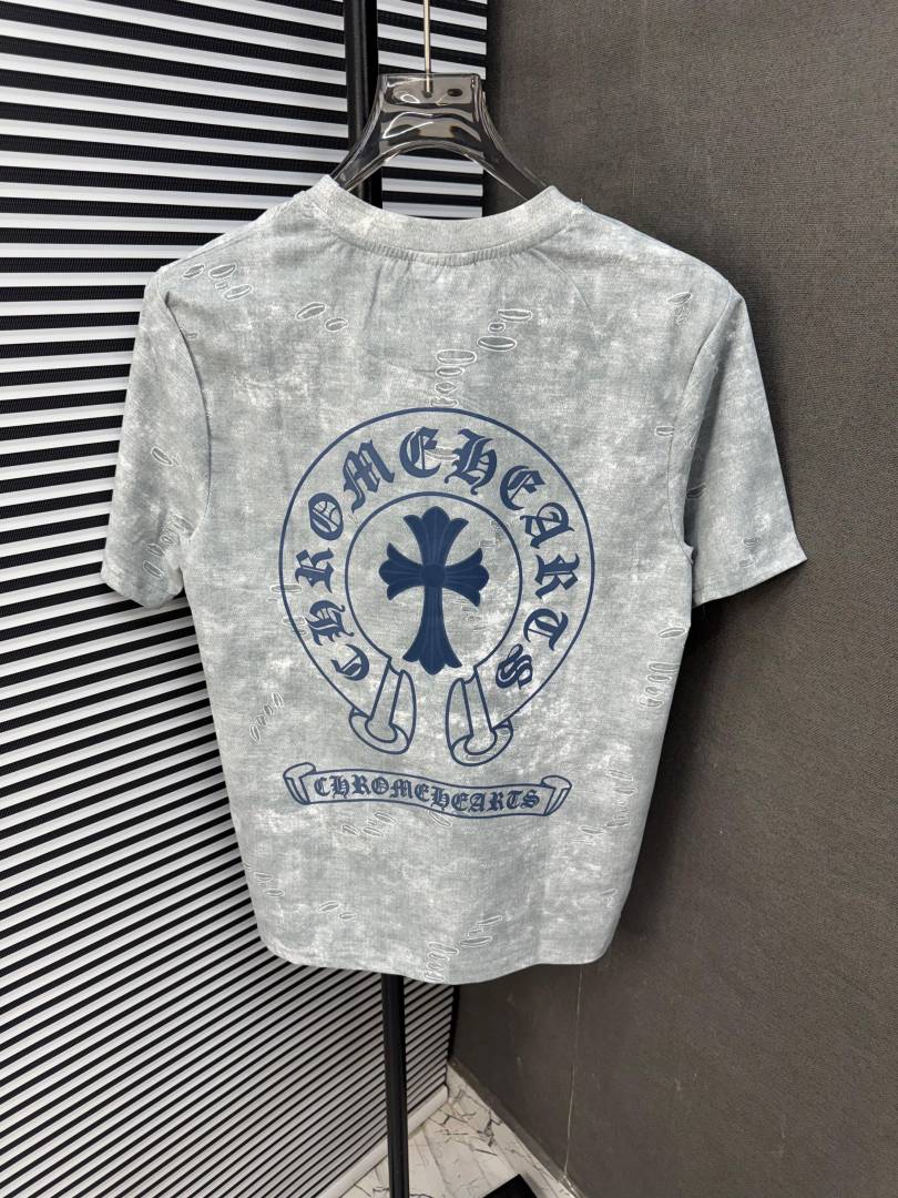 CHROME HEART GREY IMPORTED FABRIC CURRENT STORE ARTICLE VERY PREMIUM ROUND NECK TSHIRT 489