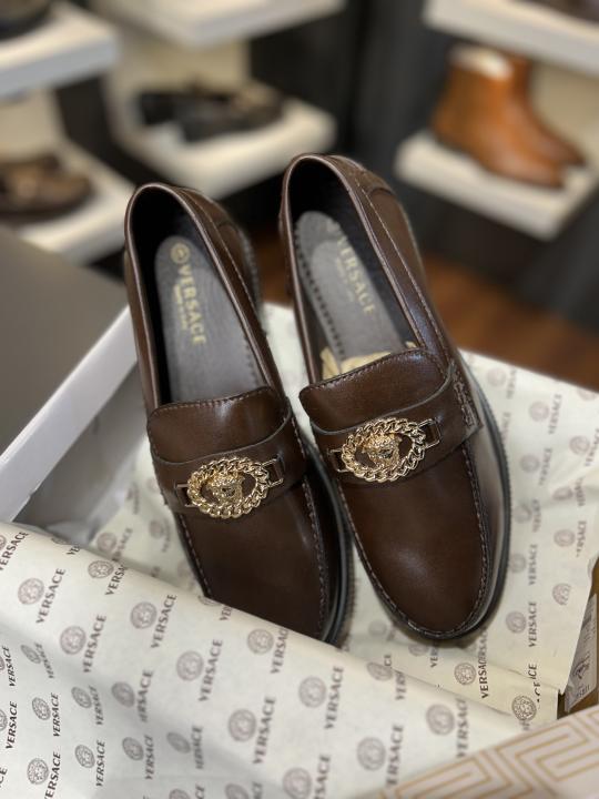 Home loafers Versace Logo party wear loafer brown V 601